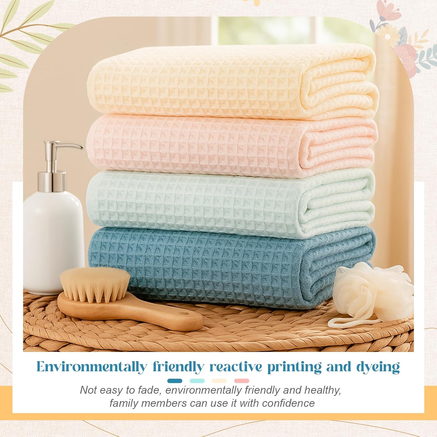 Features: Appealing Pastel Colors: Our pool towels come in a pastel color system featuring 4 lovely shades: bubblegum pink, tangy lime green, soothing sky blue, and vibrant sunflower yellow. The beauty of these rich colors adds a refreshing touch to your bathroom and enhances your bathing experience Ideal Travel Companion: Looking for the travel bath towel? Look no more! Lightweight, soft, and easier to carry, our bath towels are available in various colors, making your holiday trips colorful and interesting. Specifications: Material: 100% cotton Color: pink, lime green, blue, yellow Size: about 76.2 x 144.78 cm/ 30 x 57 inches Package includes: 4 x waffle bath towels Notes: Manual measurement, please allow slight errors on size. The color may exist a slight difference due to different screen displays.