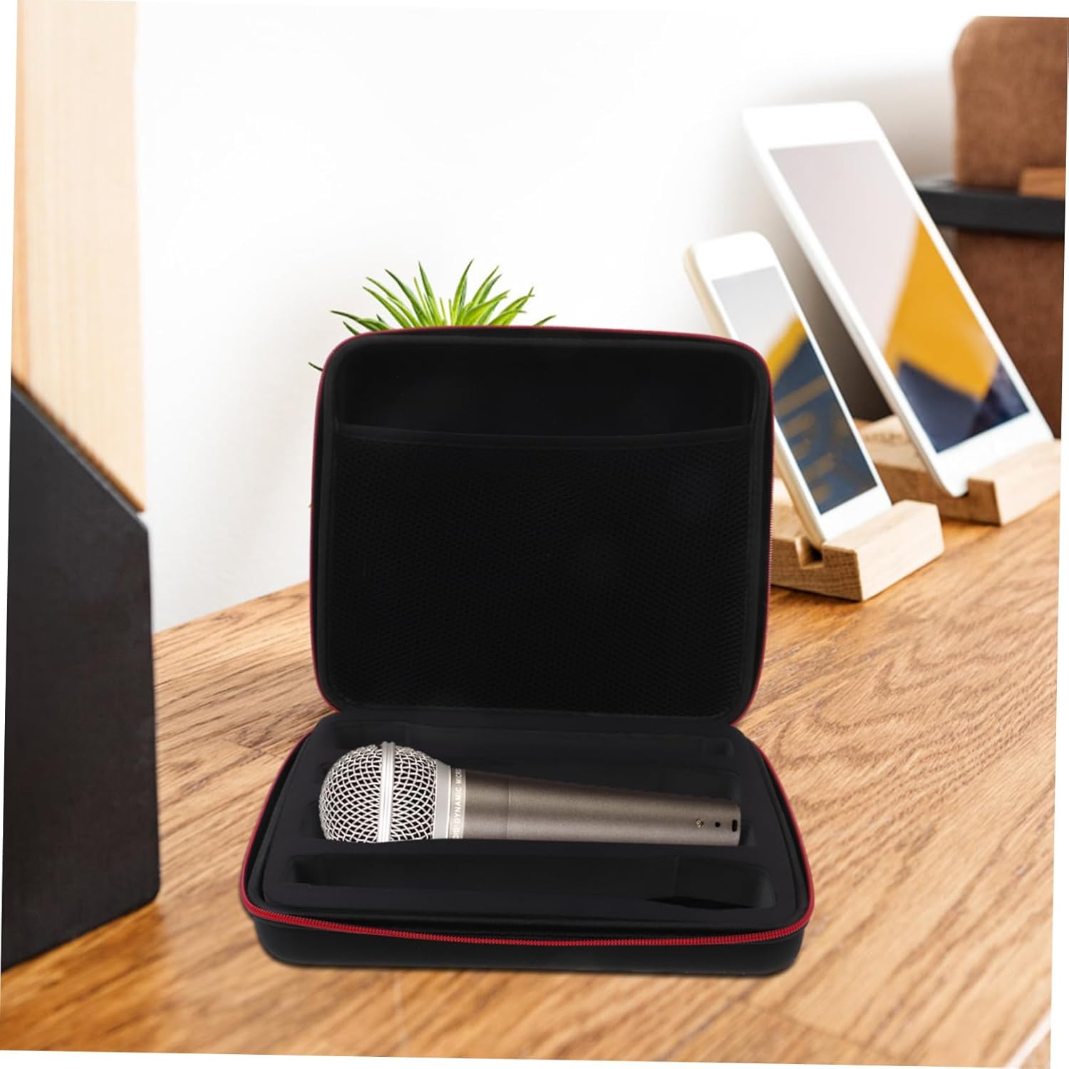 Package Include 1 x Bag Features -Note: Can store 4 holder -Material:EVA, cloth handheld mic case -Size:30.00X26.00X7.00cm/11.79X10.22X2.75in case for outdoor -Color:Black handheld storage bag -The design of the product is portable and handheld, making it easy to carry around carrying bag. -The case provides protection water, shock, and , ensuring the durability of the product bag for trip. -The portable design of the bag makes it easy to carry during outdoor performances and ktv parties, allowing you to take your equipment with you wherever you protective case. -The carrying case provides storage and protection for the and its accessories handheld mic carrying case. -The overall design is sleek and stylish, making it a great addition to any event or gathering case.Goods Descriptionmic protective case Its portable and handheld design allows you to easily take it with you wherever you go. carrier The case ensures that your is safe from water, shocks, providing protection for your equipment. case for travel This Portable Handheld Carrying Case is for on-the-go musicians and performers