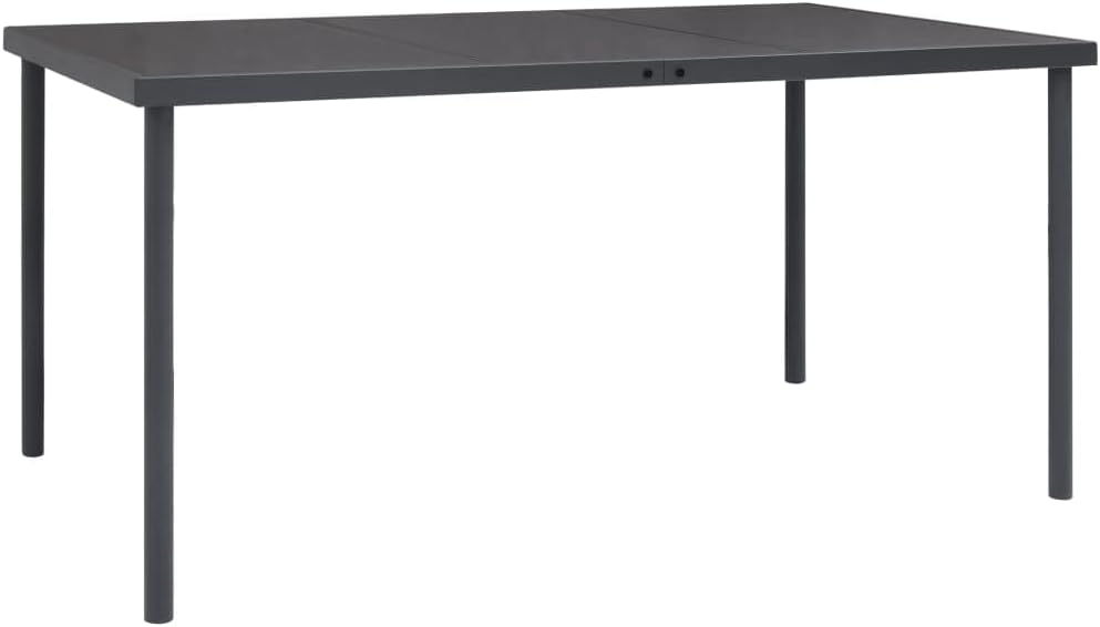This outdoor dining table, designed with clean and simple lines, is a great choice for your garden, patio, and other outdoor space. Its simple elegance will make everyday dinner special.This dining table with glass top features powder-coated steel legs, which give the table optimum stability and will definitely bring years of service. It is also very easy to clean with a damp cloth only.Note:In order to extend the life of your outdoor furniture, we recommend you to clean it regularly and do not leave it outdoors without protection unnecessarily.Clean:Use a mild soap solutionStoring:If possible, store in a cool, dry place indoors. If the product is stored outdoors, protect it with a waterproof cover. Wipe and dry the excess water or snow from flat surfaces after a rain or snowfall. Allow sufficient air circulation to avoid moisture-related damage.Color: AnthraciteMaterial: Glass, powder-coated steelDimensions: 74.8"x35.4"x29.1" (L x W x H)Assembly required: Yes