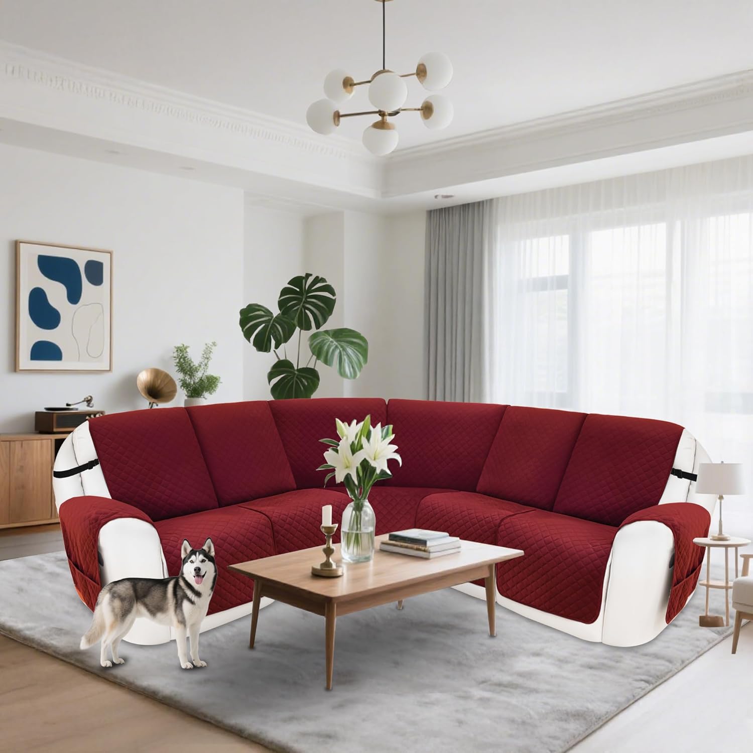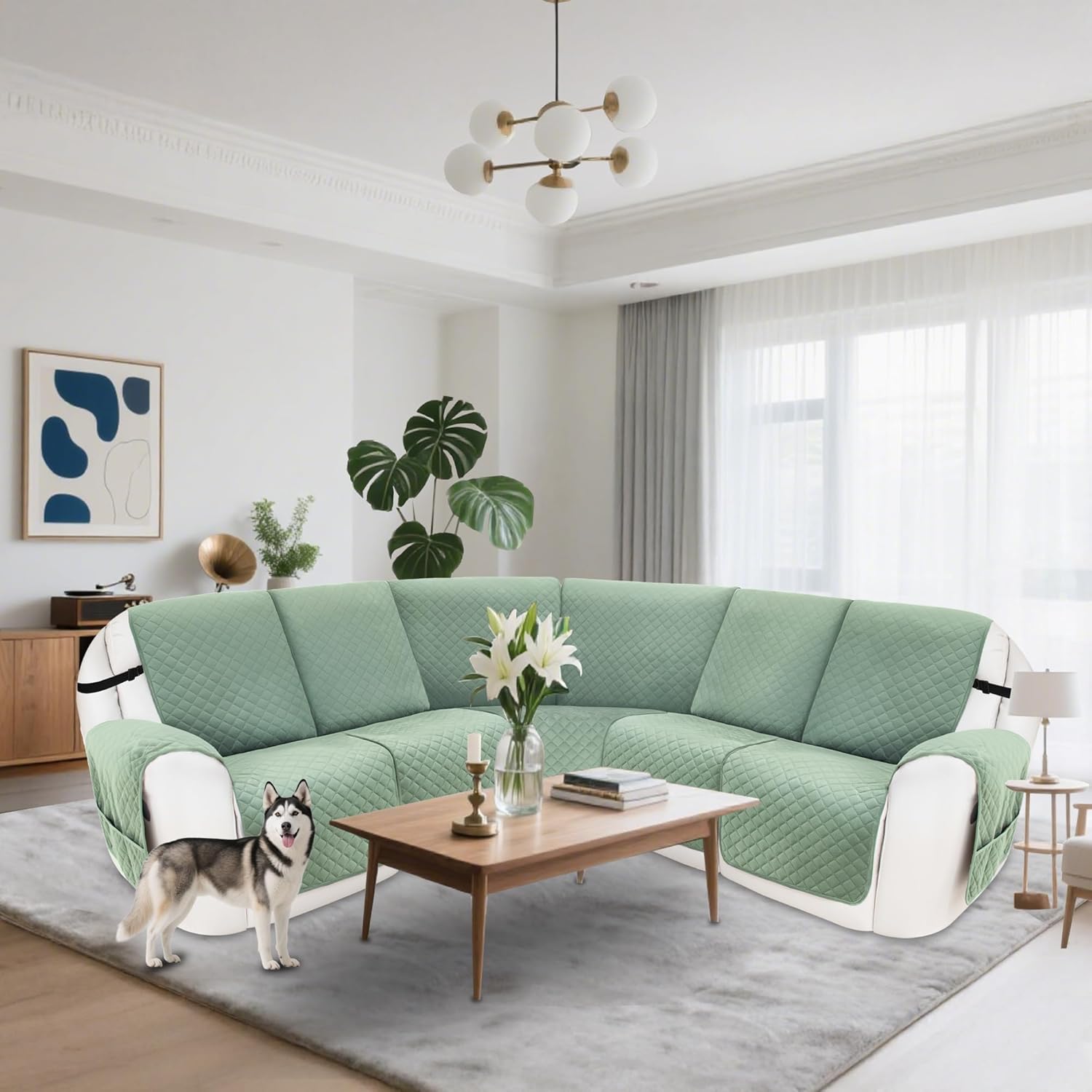 • 8-Piece Modular Design: Specially designed for 5-seater l-shaped recliners, this corner sectional couch cover includes 2 armrest covers, 4 recliner seat & back cover, 1 corner section cover and 1 middle console cover. The modular design allows for easy placement and replacement of individual sections if needed. The sectional cover features convenient side pockets on both armrests, offering perfect spots for remotes, phones, or reading glasses