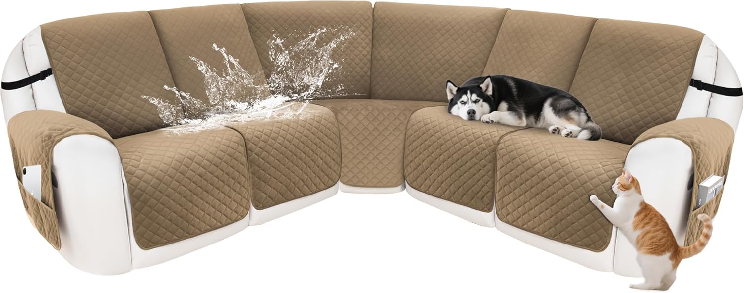 • Total Waterproof Protection:Spills happen—but with our 1OO% waterproof couch covers for reclining couches, your sofa stays completely protected. The pet friendly reclining sectional couch covers for dogs has advanced water proof layer on the seat parts that instantly locks out liquids, whether it's a coffee mishap, juice spill, or your pet's latest adventure. No more stressing over stains or damage