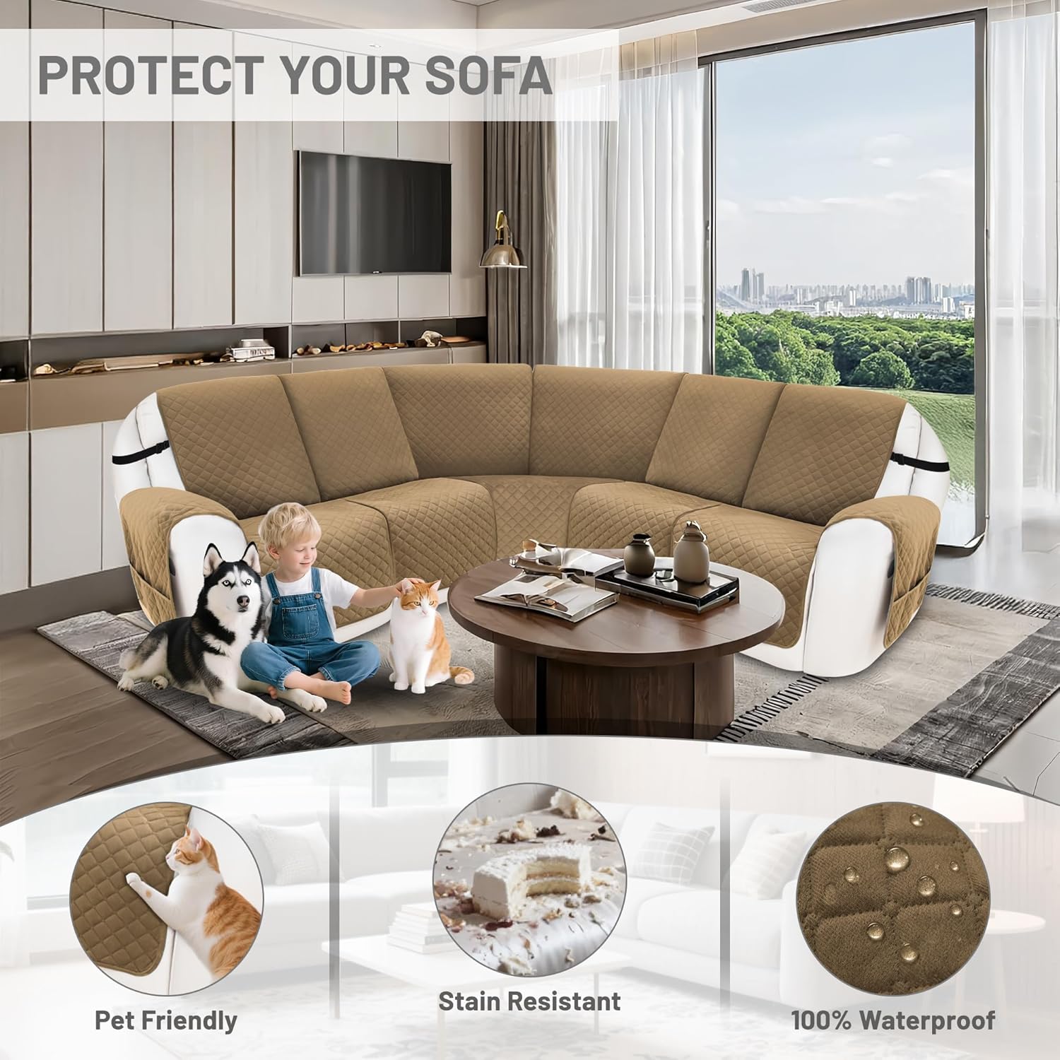 • Stay-Put Non-Slip Design:This premium sectional recliner couch covers features an advanced anti-slip system. Hidden grip strips tuck securely between cushions while the adjustable back straps keep the sectional slipcover stay in place, no more bunching or shifting, even with active pets or frequent use. The recliner sectional couch covers l shape sofa cover keeps your furniture looking crisp and fresh