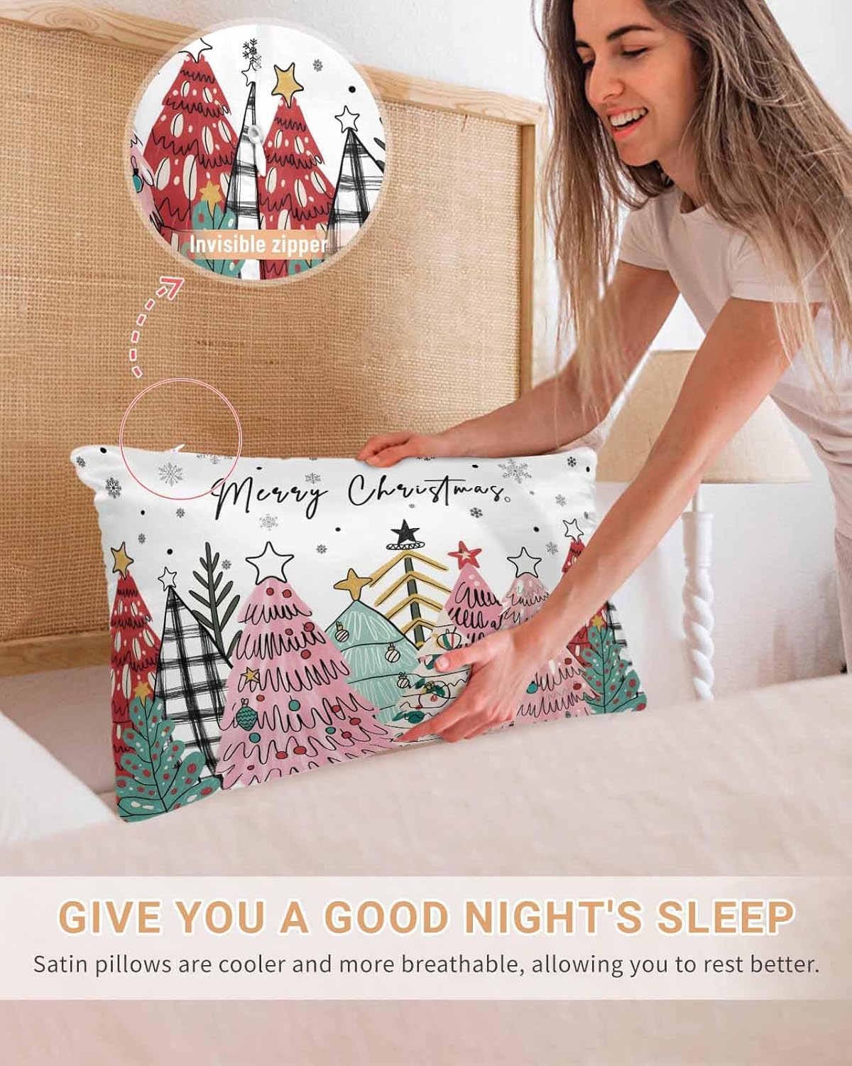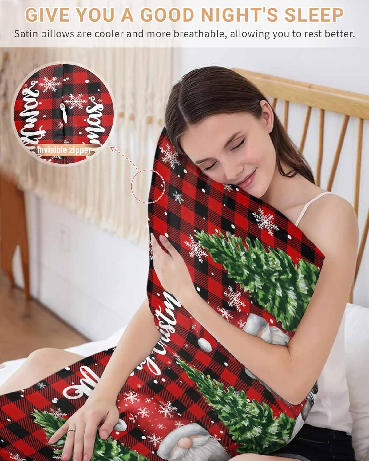 Why Choose our Pillow Covers?If you often wake up at night for the night sweat?If you are often upset for your hair and skin in the morning?Look our satin silk pillow covers.Our pillowcases are made of upgraded satin silk polyester, which is breathable, smooth, soft and comfortable. Excellent sewing and classic aesthetic make it suitable for any occasion. Are you still worried about not finding the right pillowcase?Our throw pillow covers are available in many different colors, suitable for all seasons, showing a variety of styles, is the perfect decoration for the bedroom. Size:Standard/queen/king/california king/body size pillowcases, to meet your different needs. The comfortable pillow case can be placed on the living room sofa, study room, bedroom, office, children's room, cafe, counch, indoors & outdoors, etc. Zipper Closure: This bed pillow case features an hidden zipper closure. So, the inner pillow inserts won't slip.Easy Care:Hand wash or machine wash on gentle cycle without bleach. Exquisite WorkmanshipWe use double-needle stitching on the sofa pillow covers, the stitches are even, neat and consistent. Strong and durability stitching ensures the seams will hold up well over time. The edges are tight and neat with no loose threads. The fine details of craftsmanship are evident in the modern pillowcase set, in every aspect of its design and construction. Not only does it look beautiful, but it also feels luxury and stylish. Best GiftEnhances cool touch, deep sleep. Keep away from heat and humidity. Beautifully designed and easy to carry, our lightweight bed pillow cover is the best partner for RV, camping or enjoying travel at any time; a good choice as a birthday gift or special festival gift, such as Thanksgiving gift, Christmas gift for your loved ones kids, boys, girls, kids, toddlers, teens, women, men and families.